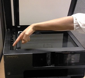 of paper located at the bottom of the printer, just below the print output